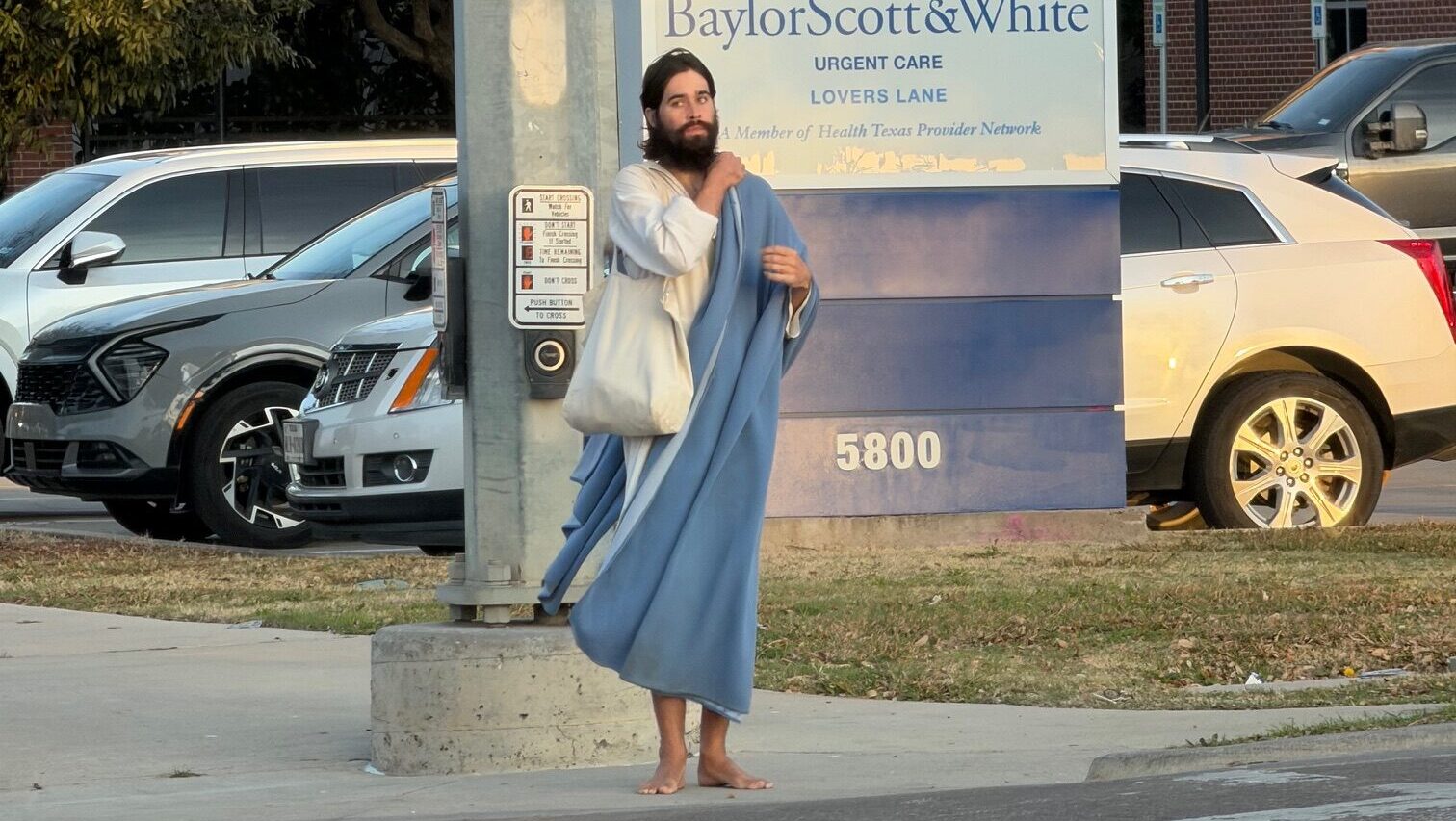 A local emailed the Lakewood/East Dallas Advocate this week and reported seeing a man who appeared to look like Jesus on Tuesday evening at the corner of Lovers Lane and Matilda Street.