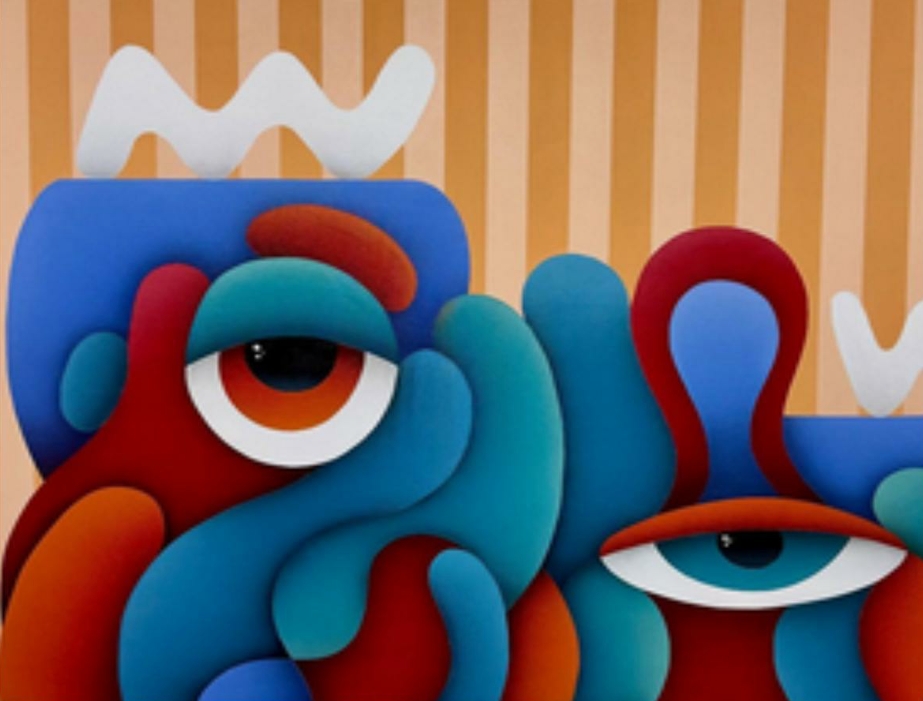 Sheely’s work is instantly recognizable by his bold use of color and uncanny take on faces — think big eyes and fully-displayed teeth. On his website, Sheely describes his artistic style as “neo-expressionist.”